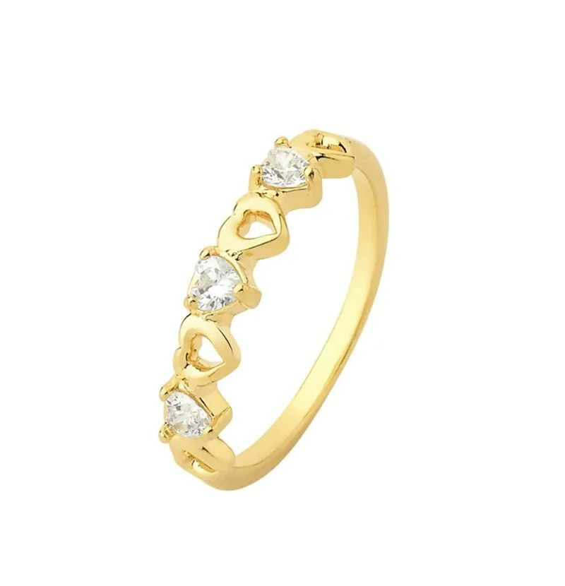 Descubra o Anel Corações Vazados e Zircônias Banhado a Ouro, uma semijoia que combina delicadeza e brilho em um design apaixonante. Seus corações vazados ganham vida com o toque sofisticado das zircônias, irradiando charme e elegância. Perfeito para quem quer realçar o estilo com um acessório cheio de significado e beleza. Encante-se com essa peça única e transforme seu visual!